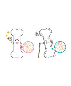 骨量は20歳前後で最大骨量に達し、40代半ばくらいまでは一定の骨量を維持できます。50歳近くから徐々に減りはじめ、骨がもろくなるため、骨粗鬆症が起こりやすくなります。