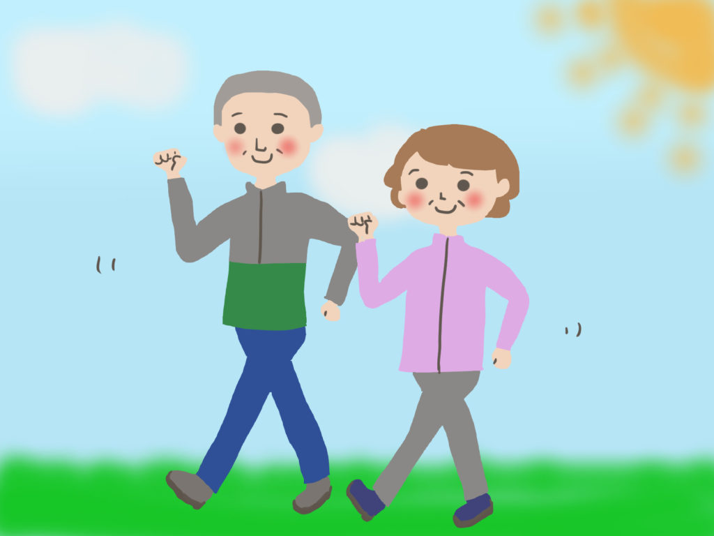 目安としては歩行なら 男性8,000歩 女性は7,000歩程度 の運動を、長期的に行うと骨にほどよい負荷がかかって強くなります。